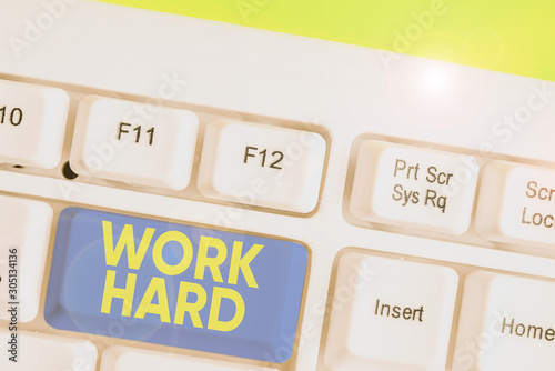 Conceptual hand writing showing Work Hard. Concept meaning Laboring that puts effort into doing and completing tasks