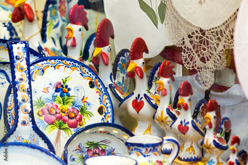 roosters and dishes of porcelain typical of Portugal, Madeira Island