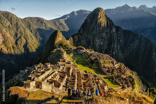 Panorama de ciudadela Machu Picchu al amanecer