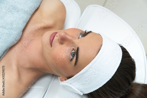 Medycyna estetyczna. Kobieta w salonie kosmetycznym. Piękna cera.