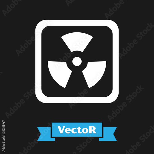 White Radioactive icon isolated on black background. Radioactive toxic symbol. Radiation Hazard sign. Vector Illustration