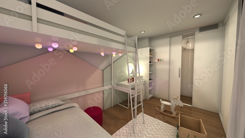 DORMITORIO INFANTIL CON LITERA .RENDER 3D