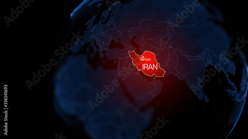 3d illustration, Middle east region map with Iran. Map of Iran a symbol of conflict