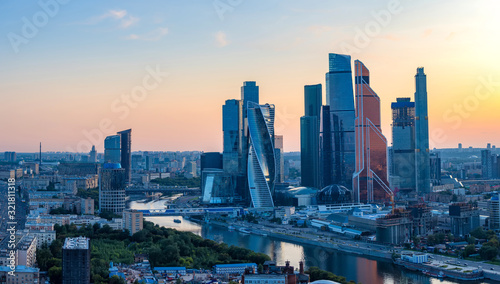 Moscow. Russia. Panorama of Moscow city. Modern skyscrapers in the center of Moscow. Presnenskaya embankment. Contemporary Russian architecture. Russia business. Downtown. Guide the capital