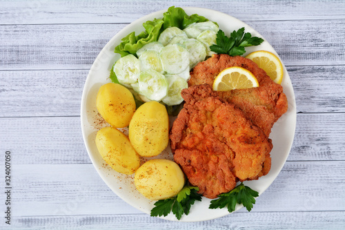 kotlet schabowy z ziemniakamii i mizerią