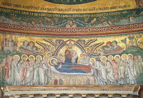 Jacopo Torriti's mosaic 'The Dormition of the Virgin Mary' (1296) in the apse of the Papal Basilica of Santa Maria Maggiore, Rome, Italy