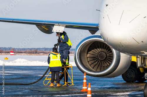 #204883030Passenger airplane on snowy runway during winter storm