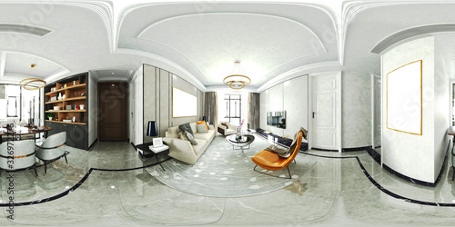 3d render of home living room, 360 degrees