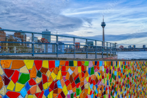 Düsseldorf mit Altstadtufer und bunter Mauer