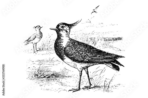 PEEWIT (Vanellus cristatus) - Vintage Engraved Illustration 1889