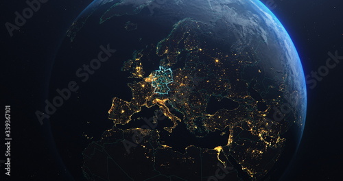 Germany map outline view from space, globe planet earth, teal color, elements of this image courtesy of NASA
