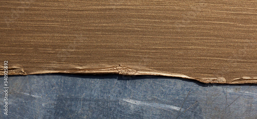 Łuszcząca się złota farba na metalu.