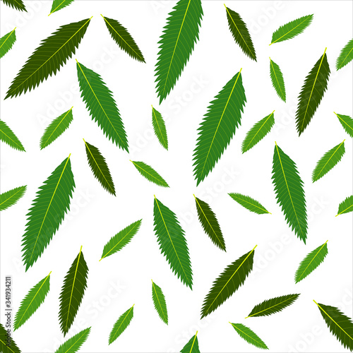 Pattern of green flowers and leaves on a white background, vector illustration, design, textiles, decoration
