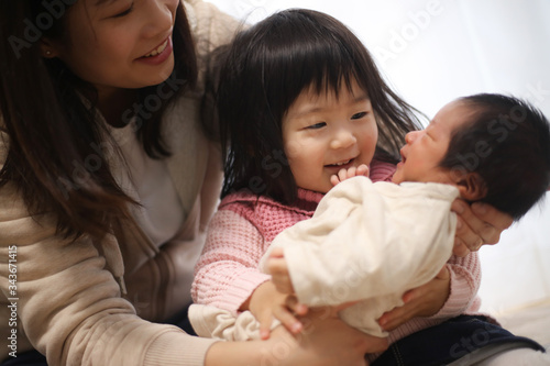 赤ちゃんをあやす親子