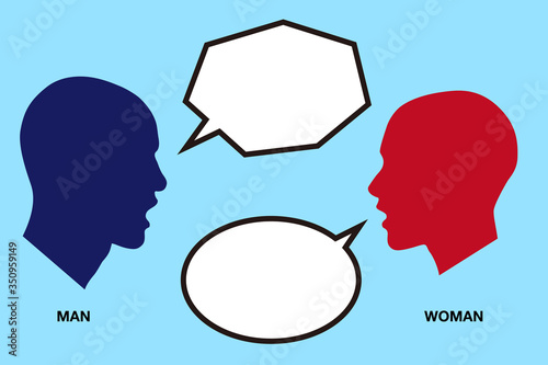Man and woman side face silhouette talk with speech bubble, vector illustration