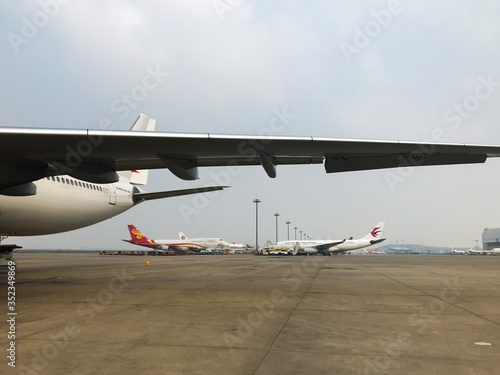A large passenger jet sitting on top of a runway