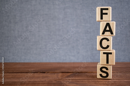 Word FACTS text on wooden cubes on dark wooden backround. Business, Marketing, Information concept.