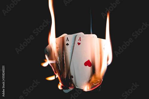 Brennende Spielkarten / Pokerkarten Ass - Feuer und Rauch und schwarzer Hintergrund