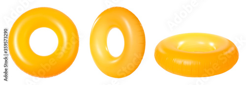 Set with bright inflatable rings on white background, banner design