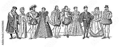 Fashion history Collection from 1510 to 1590 / a big evolution in fashion/ Vintage and Antique illustration from Petit Larousse 1914