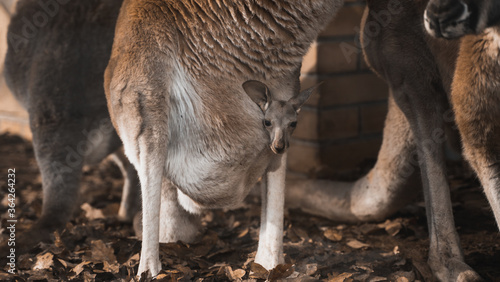 mały kangur u matki w torbie w zoo