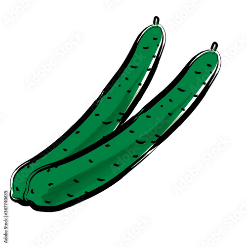 アナログタッチ筆描き水彩画 キュウリのイラスト野菜|Cucumber illustration