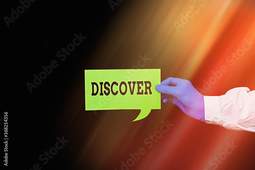 Word writing text Discover. Business photo showcasing obtain sight or knowledge of for the first time in your entire life Displaying Empty Sticker Paper Accessories Smartphone With Medical Gloves On