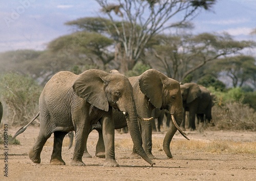 AFRICAN ELEPHANT loxodonta africana, GROUP IN AMBOSELI PARK, KENYA