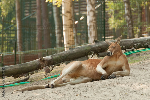 kangur australijski odpoczywający w upalny dzień w ludzkiej pozie