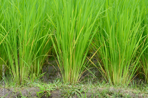 Green rice in the field