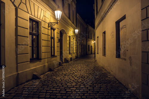 Retezova Street in Prague at Night, a Mysterious, Dark Cobblestone Alley