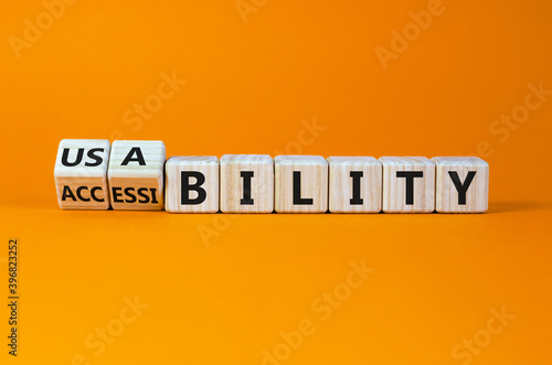 Usability and accessibility symbol. Inverted cube and changed word 'usability' to 'accessibility'. Beautiful orange background. Business and usability and accessibility. Copy space.
