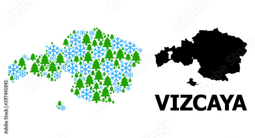 Vector mosaic map of Vizcaya Province done for New Year, Christmas, and winter. Mosaic map of Vizcaya Province is done with snow and fir trees.
