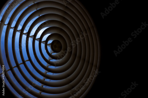 ventilation grill diffuser close-up mounted in the duct at night, the front and background are blurred