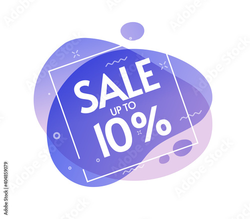 Up to 10 discount promotion sale percentage label vector icon, ten off offer isolated purple blue color