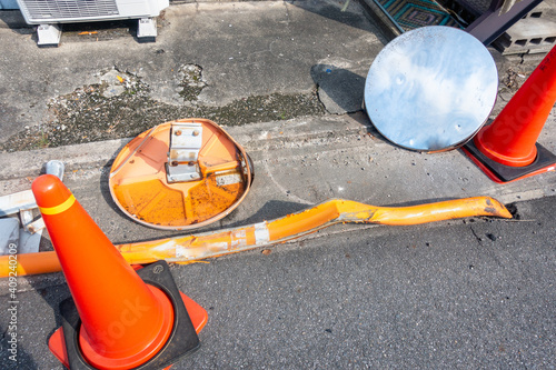 事故で破損したカーブミラーの写真