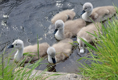 Close up of a family of cygnets Devon England