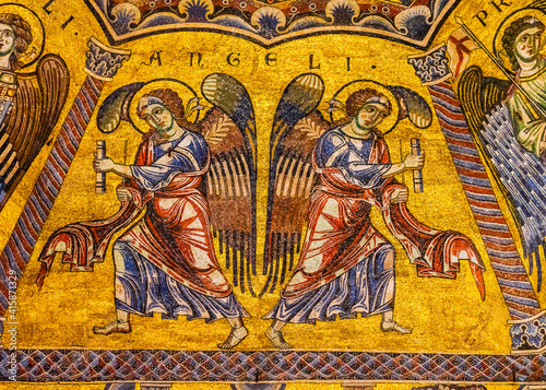 Angels mosaic, Florence Baptistery, Florence, Italy. Baptistery created 1050 to 1150, mosaics by Friar Jacobus in 1200's.