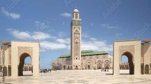 wide view of the entrance to hassan ii mosque in casablanca