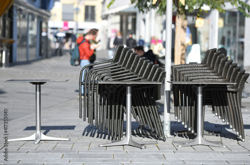 Lockdown in Corona-Krise, geschlossene Gastronomie in Wels, Oberösterreich, Österreich - Lockdown in Corona crisis, closed gastronomy in Wels, Upper Austria, Austria