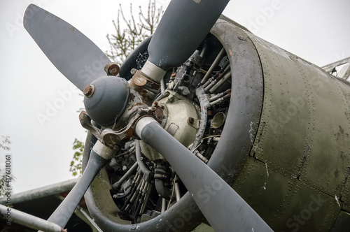 Wrak starego samolotu stojący w zaroślach
