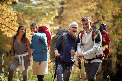 Hikers looking nature in autumn