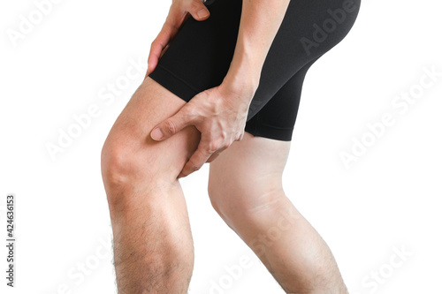 Leg muscle pain.young man and grasped his muscles. With foot pain and stretching, fatigue muscles to alleviate pain, health concepts.