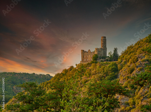 Maus Castle at sunset, Rhine Valley, Germany