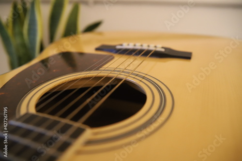 Piękna gitara akustyczna gryf drewno struny gitarzysta