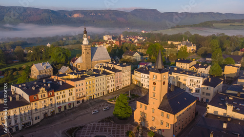 The city of Radków in Poland. In the background Szczeliniec Wielki and the Table Mountains.
