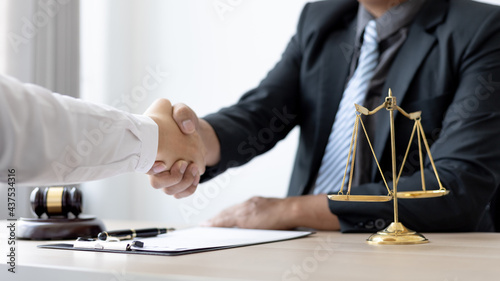Businessman shaking hands with a lawyer or judge After signing the contract and the agreement is complete, Approval of an agreement between business and law, End of the legal case.