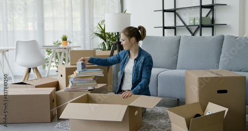 Young woman unpacking in her new home