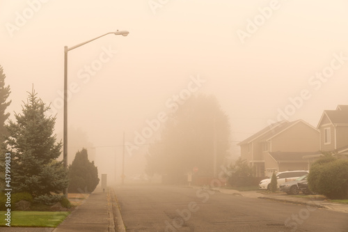 Residential Street with Haze and Smoky Sky From Forest Fires