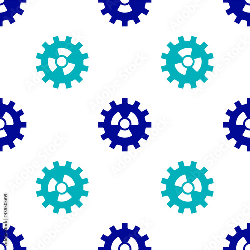 Blue Radioactive icon isolated seamless pattern on white background. Radioactive toxic symbol. Radiation hazard sign. Vector